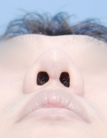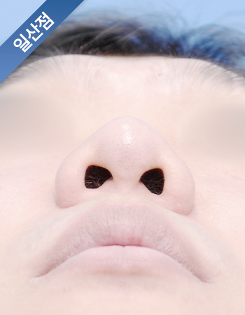 코끝은 본인 자가연골인 비중격연골을 이용한 봉합기법으로 모으로 올려 처진코끝을 교정함.