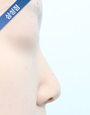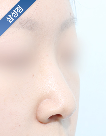 콧대라인에 맞춰 자연스럽게 모아올려준 비개방 무보형물 교정성형